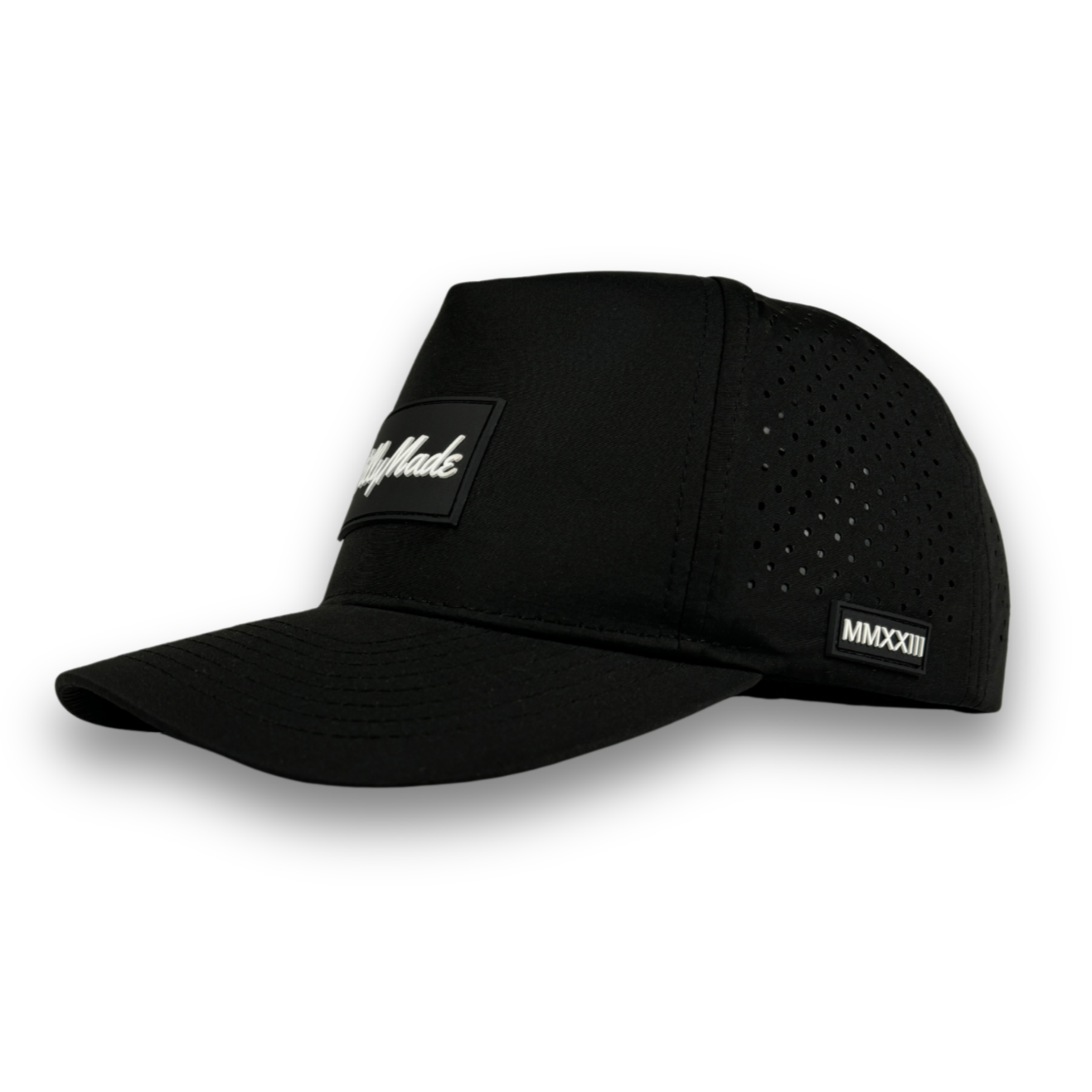 Introducing our waterproof laser perforated hats. Our 100% polyester material helps you stay dry and keep your hat looking fresh.